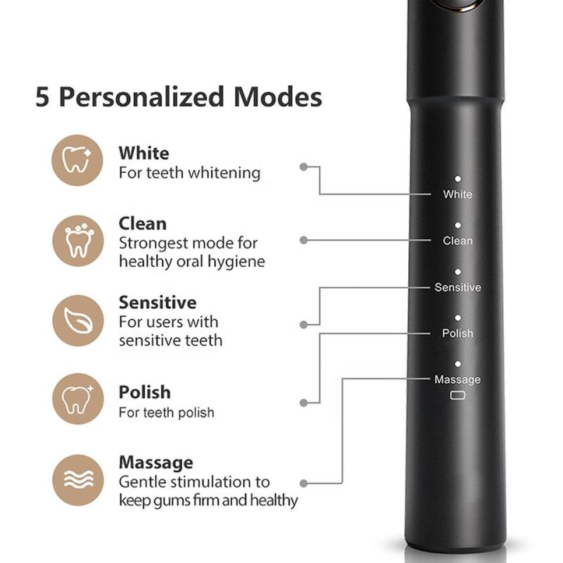 It comes with 5 brushing modes to meet different needs such as cleaning, whitening, polishing, and gum care. Whether you want a soft clean or a deep polish, this electric toothbrush for adults provides the perfect mode for every preference.