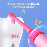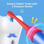 The Bitvae Kids Electric Toothbrush features an inbuilt pressure sensor that lights up when too much pressure is applied, reminding kids to brush gently and protect their gums.